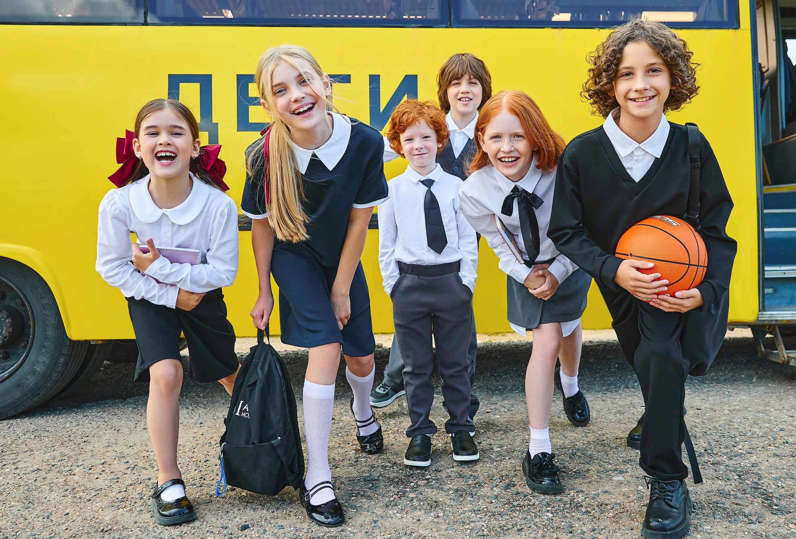 В линейку вошли костюмы для мальчиков, сарафаны, юбки и жилеты для девочек в черном и сером цветах, которые можно дополнить рубашками с акцентными бантиками и декоративными элементами. Такие образы подчеркивают индивидуальность и придают уверенности в любой учебной ситуации.