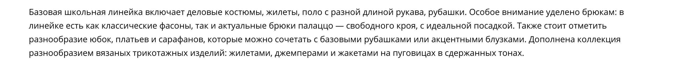 Главной новинкой сезона стал запуск линейки Premium School — это серия изделий, которые отличаются особым подходом к материалам и дизайну. В этих моделях используется плотный, структурированный текстиль. Такое полотно хорошо держит силуэт, даже при длительной носке и частых стирках.