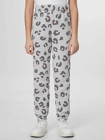 Теплые брюки для девочек серые с леопардовым принтом