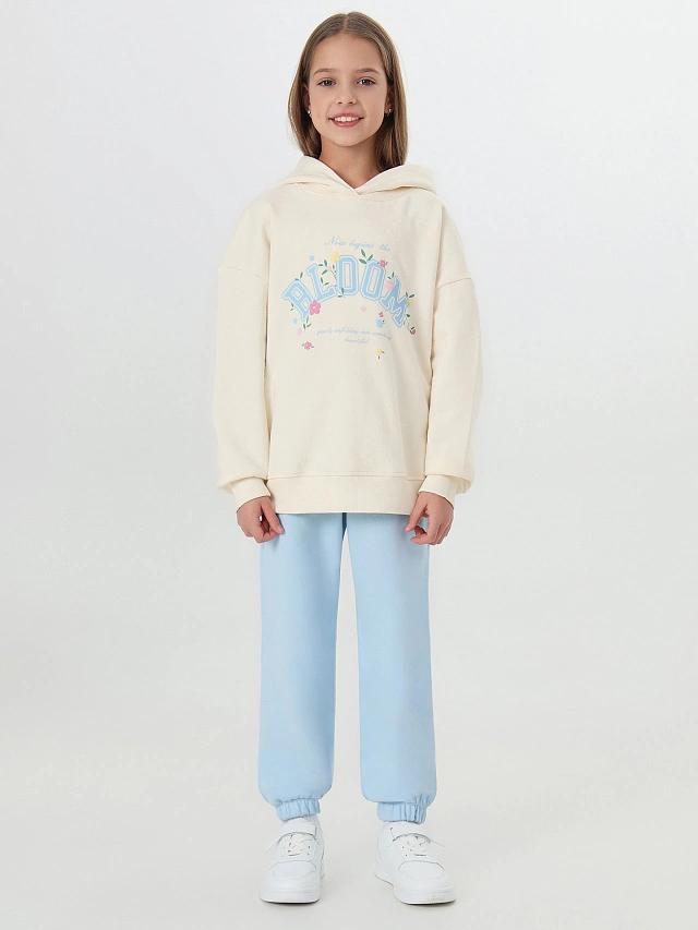 Комплект для девочки с вдохновляющей надписью «Теперь начинается путь к чему-то прекрасному. Цвети.» — словно первое весеннее тепло, которое напоминает: самое красивое только начинается. Мягкое худи с капюшоном и свободные брюки создают уютный, современный образ, в котором так комфортно гулять, встречаться с друзьями и наслаждаться тёплыми днями.