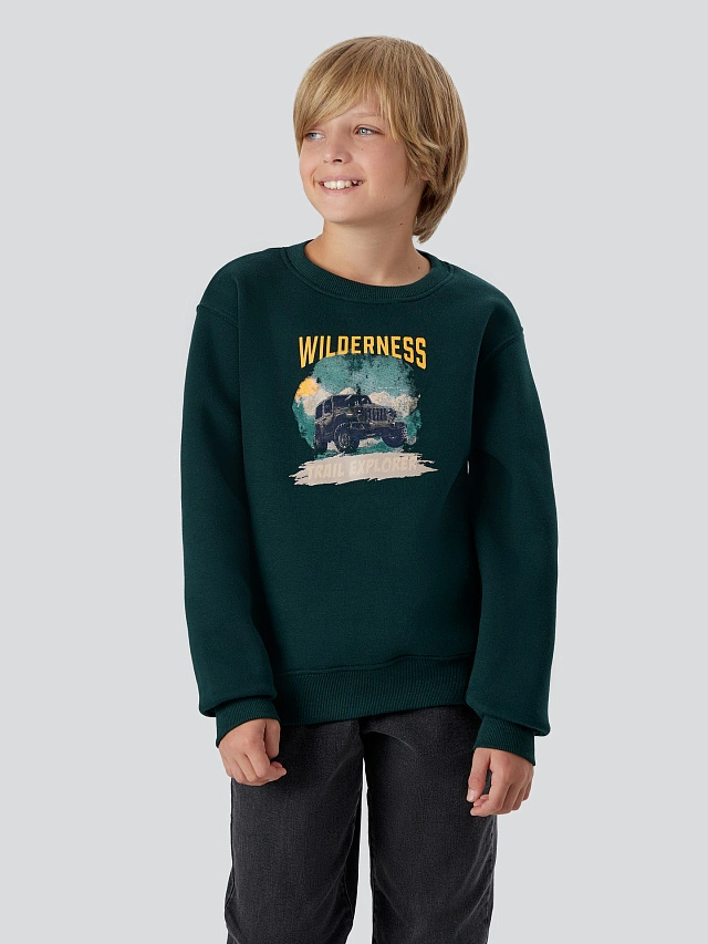 Свитшот для мальчиков зеленый с надписью "Wilderness"