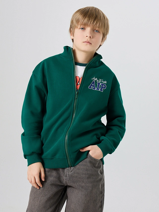 Эта толстовка насыщенного зеленого оттенка — для юных мечтателей и исследователей. Аббревиатура AIP расшифровывается как «Anything Is Possible», что в переводе означает «Всё возможно» — это вдохновляющее послание, которое поддержит в любых начинаниях.