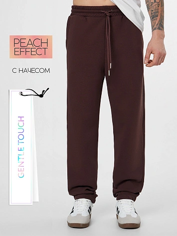 Теплые брюки джоггеры мужские коричневые с начесом