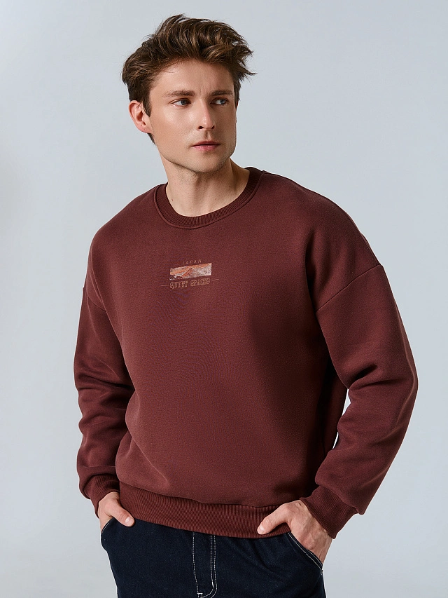 Теплый свитшот мужской коричневый с начесом и художественным принтом