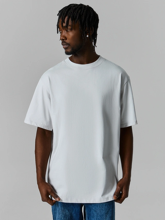 Мужская футболка прямого свободного кроя — базовая вещь, которая пригодится в любом гардеробе. Круглая горловина, спущенная линия плеч и углублённая пройма обеспечивают свободу движений. Широкие рукава до локтя добавляют образу расслабленности.