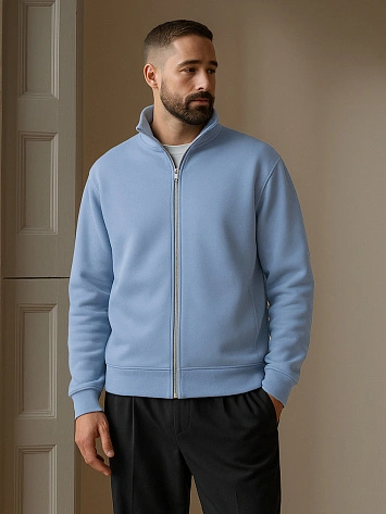 Теплая толстовка мужская голубая с начесом