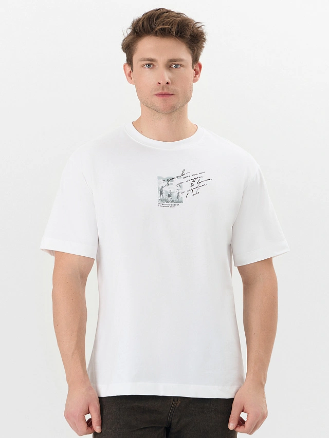 Белая мужская футболка с надписью — это не просто предмет одежды, а лаконичная модель с глубоким смыслом, созданная для повседневной носки. Она выполнена из хлопка — натурального, мягкого и дышащего материала, который обеспечивает коже комфорт.