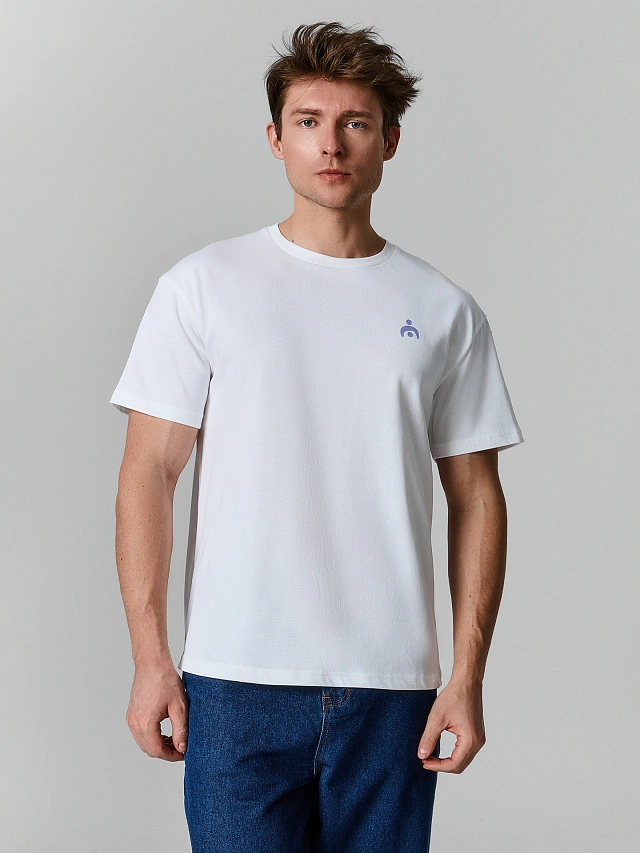 Футболка в классическом белом цвете с эффектным принтом на спине — выбор для тех, кто ценит в повседневном стиле лаконичность и индивидуальность. Прямой свободный крой и слегка спущенное плечо обеспечивают полную свободу движений. Принт на спине становится стильным акцентом.