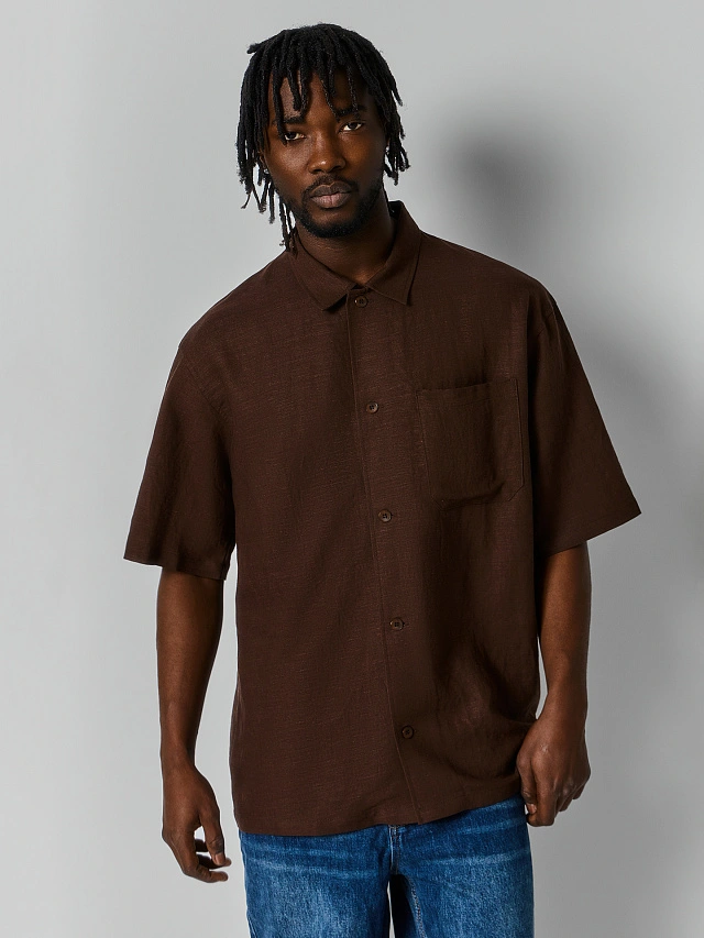 Рубашка мужская льняная коричневая