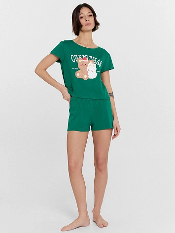 Пижама женская зеленая с принтом и надписью "all i want is you"