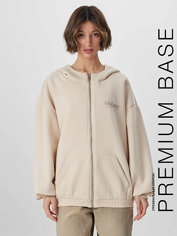 Толстовка женская бежевая на молнии с надписью "whatever"