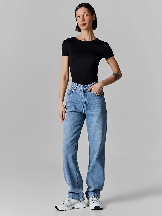 Материал приятен к телу, хорошо пропускает воздух и подходит для тёплого времени года. Голубой цвет — универсальная база. Такие джинсы легко сочетаются с топами, футболками, рубашками, джемперами и обувью. Вариант для прогулок, встреч, работы или повседневных образов.