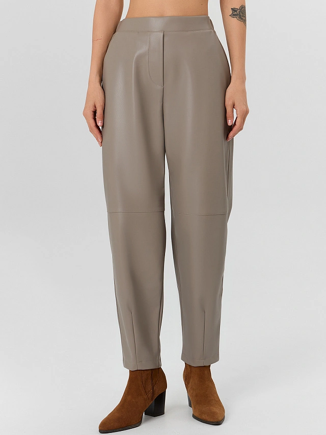 Модные брюки женские бананы из высококачественного материала - экокожа. Пояс отрезной из основного полотна, передняя часть пояса гладкая, задняя часть с эластичной тесьмой внутри. В брюках карманы с отрезным бочком. На передних деталях горизонтальные членения и вытачки по низу. Комфортный мягкий материал хорошо ведет себя в носке, слегка тянется, не стесняет движений. Такие брюки женские отлично подходят для осенне-зимнего периода. Вариант брюк, который можно сочетать с массой других вещей из вашего гардероба за счет облегающего силуэта. В линейке широкий размерный ряд, есть модели для девушек plus-size. Красивые базовые и пастельные цвета. Если вы в поиске универсальных брюк на прохладное время года, обратите свое внимание на эту модель, она точно не оставит вас равнодушной. Купить женские брюки недорого можно у нас на сайте Mark Formelle и в магазине. Отличный подарок для себя и близких на любой праздник и просто без повода!