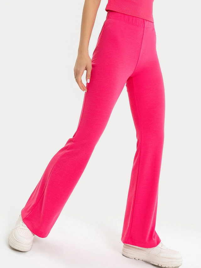 Брюки клеш женские в ярко-розовом цвете