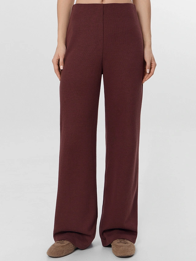 Эластичный пояс без застежки обеспечивает комфортную посадку и не сдавливает талию. Практичный состав сохраняет форму после носки и ухода. Насыщенный бордовый оттенок легко сочетается с разными верхами — от классических блуз до уютных свитеров. Брюки станут универсальным выбором для офиса, встреч с друзьями или прогулок.