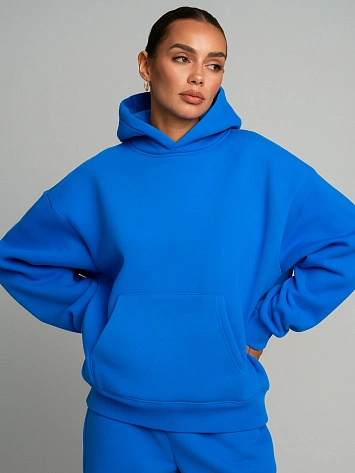 Теплое худи женское голубое с капюшоном