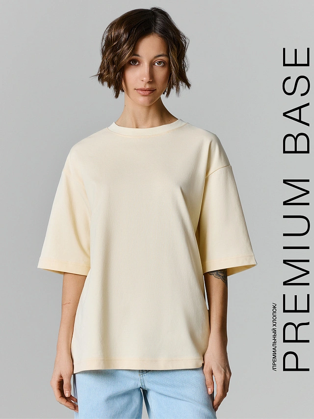 Футболка жёлтого оттенка из линейки Premium Base — идеальный выбор для создания яркого образа. Свободный оверсайз-силуэт со спущенным плечом и удлинённой проймой дарит телу полную свободу движений и ощущение лёгкости, делая её идеальной для повседневной носки, прогулок или встреч с друзьями.