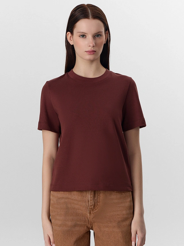 Классическая круглая горловина и укороченный крой создают универсальный силуэт, который легко комбинируется с юбками, брюками или шортами. Футболка не сковывает движения, сохраняет форму и цвет после множества стирок, не растягиваясь и не садясь. Материал приятен к телу, не требует особого ухода и быстро сохнет.