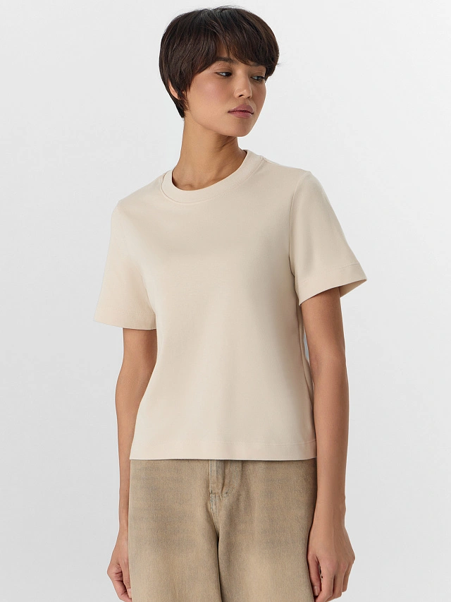 Классическая круглая горловина и укороченный крой создают универсальный силуэт, который легко комбинируется с юбками, брюками или шортами. Футболка не сковывает движения, сохраняет форму и цвет после множества стирок, не растягиваясь и не садясь. Материал приятен к телу и быстро сохнет.