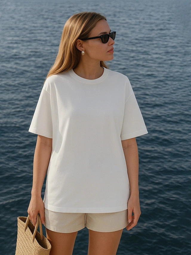 Белая однотонная футболка понравилась - правильный цвет, средняя плотность, чуть просвечивает. Размер М отлично сел на параметры 90-73-102 рост 170 - умеренный оверсайз. Рекомендую!
