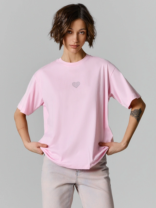 Футболка оверсайз женская розовая с сердечком