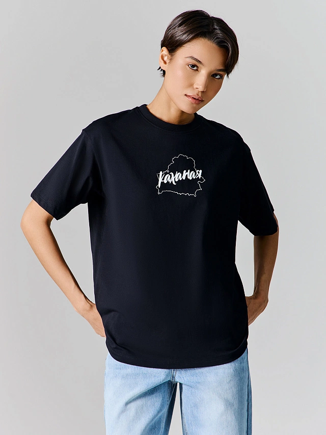 Футболка женская оверсайз черная с надписью "Каханая"
