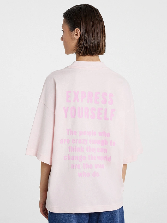 Футболка женская светло-розовая с печатью