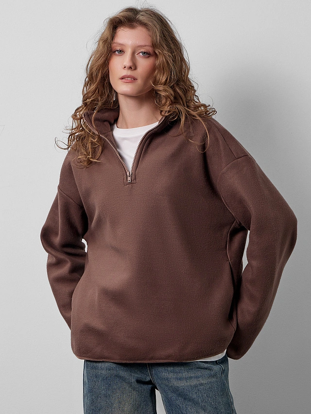 Представляем невероятно мягкую и нежную толстовку, которая станет отличным дополнением вашего гардероба. Модель свободного силуэта с круглой горловиной и воротником-стойкой обеспечивает максимальный комфорт. Центральная застежка на молнию и длинные рукава со спущенной линией плеча делают эту толстовку удобной и практичной. А боковые карманы с подкладкой из кулирки добавляют удобство и функциональность. Изделие выполнено из флиса - мягкого, теплого и дышащего материала, который быстро сохнет и прекрасно сохраняет тепло. Флис также является легким и долговечным, обеспечивая уют и комфорт в любую погоду.