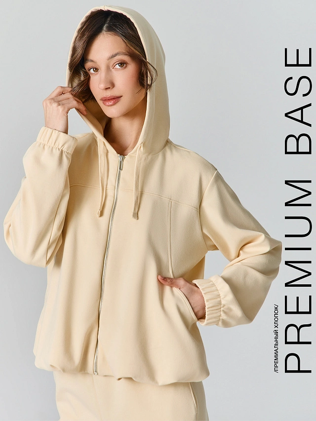 Бежевая женская толстовка на молнии из коллекции Premium Base — это базовая модель высокого качества. Укороченный свободный силуэт со спущенным плечом создаёт современный и расслабленный вид, обеспечивая комфорт в движении.