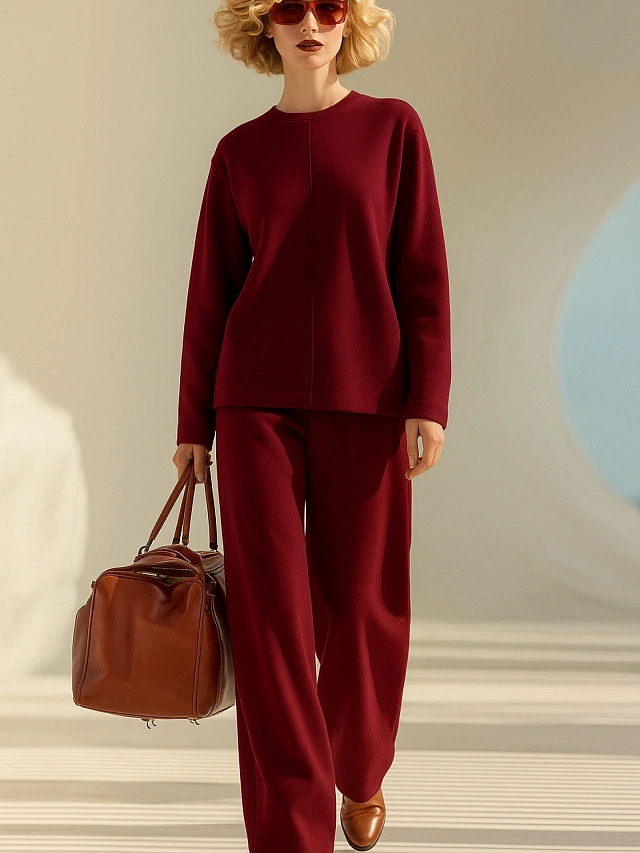 Бордовый женский костюм — идеальное сочетание стиля, комфорта и практичности для вашего повседневного гардероба. Джемпер свободного кроя из мягкого хлопкового материала обеспечивает неограниченную свободу движений и приятные тактильные ощущения. Брюки с эластичным поясом мягко фиксируются на талии, сохраняя комфорт даже при длительной носке.