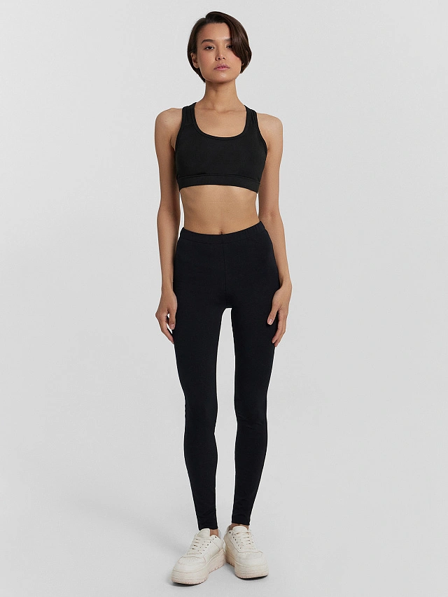 Леггинсы изготовлены из полотна - кулирка. Леггинсы плотно облегаюшие бедра и ноги по всей длине, с высокой линией талии. Пояс цельнокроеный с эластичной тесьмой внутри.